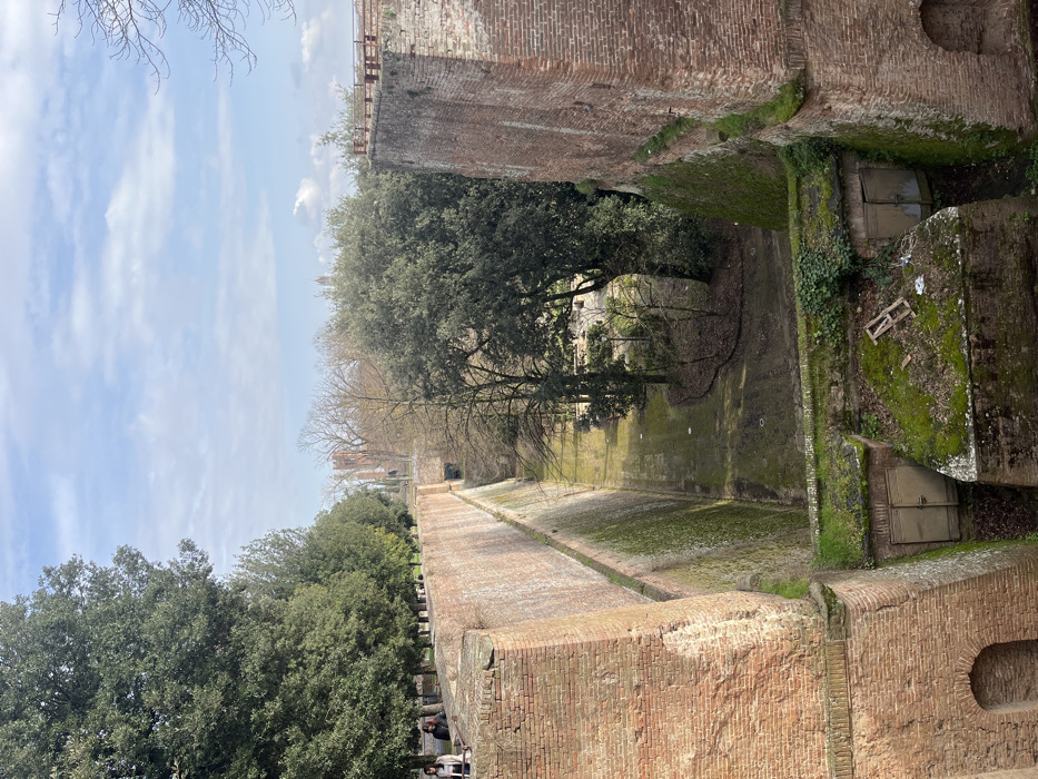 - "The image depicts a deep, brick-lined trench, characteristic of a defensive moat, running alongside the Fortezza Medicea in Siena, Italy" by FM-X3uic2, licensed under CC BY 4.0