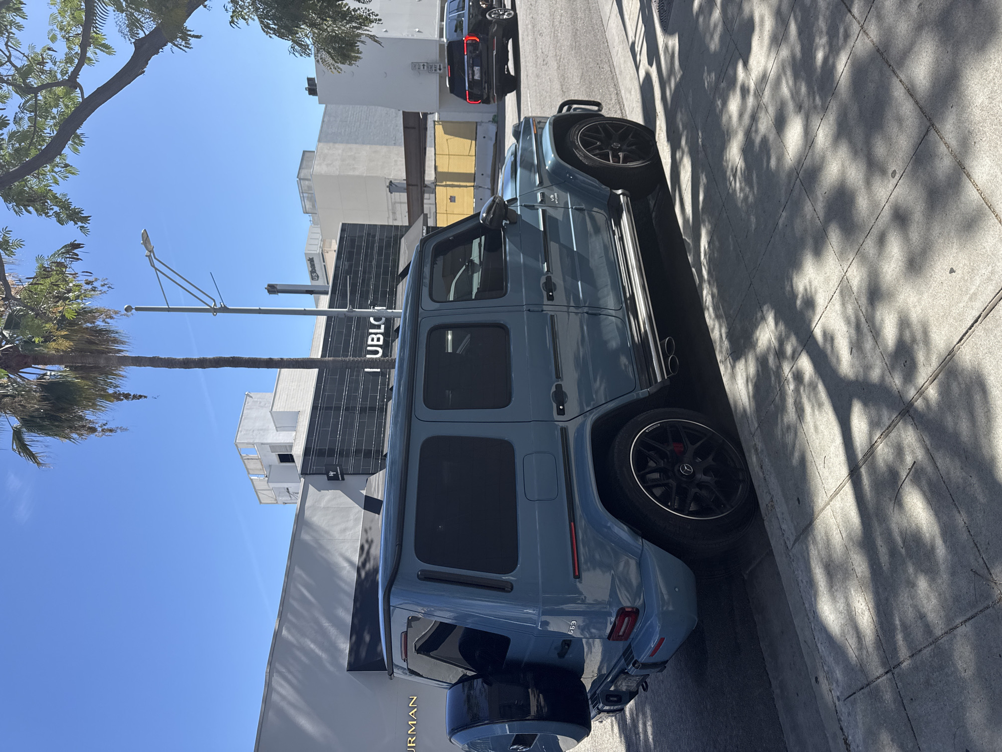- "The image captures a dusty blue Mercedes-Benz G-Wagon SUV parked along a sidewalk in Beverly Hills, California" by FM-Nexvl1, licensed under CC BY 4.0