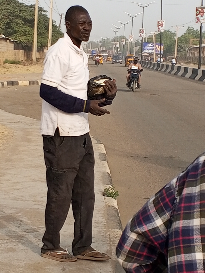 - "A man stands on a sidewalk next to a busy street holding a package" by FM-dHl4F2, licensed under CC BY 4.0