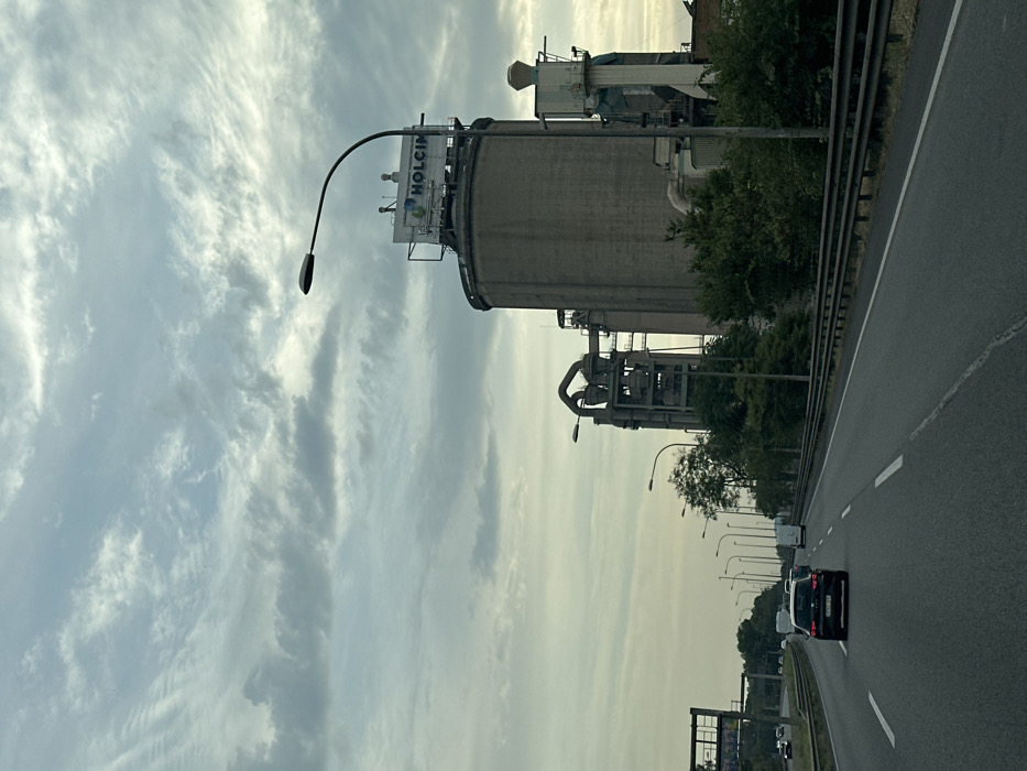 - "The image depicts an industrial facility, identified by a "HOLCIM" sign atop its tallest concrete silo, situated on the right side of a multi-lane highway" by FM-tAd7y1, licensed under CC BY 4.0