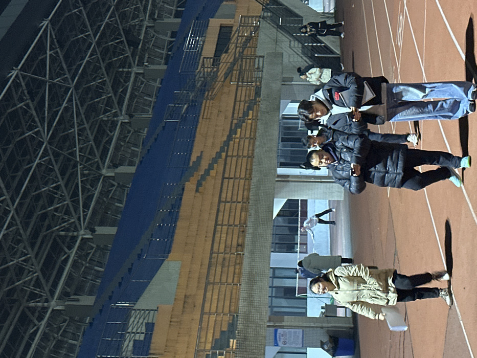 The image displays a nighttime scene on a red running track within a stadium in Jiangjin, China