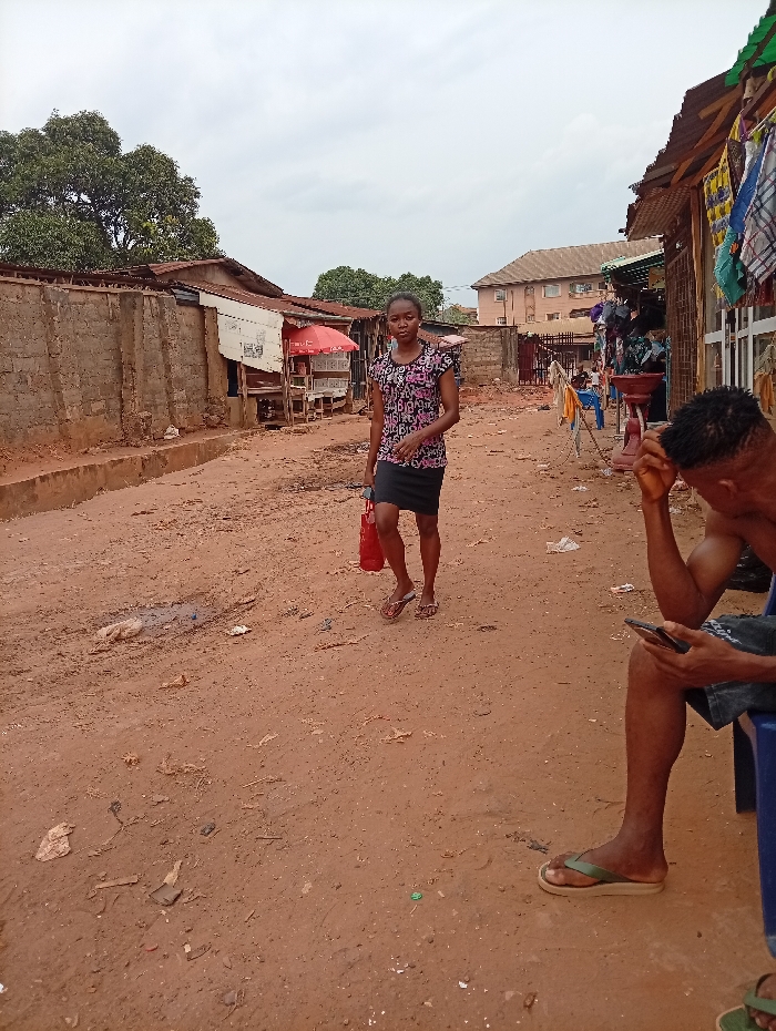 - "The scene depicts a street in Onitsha, Nigeria, characterized by a reddish-brown dirt road with scattered debris and tire impressions" by FM-AQN872, licensed under CC BY 4.0