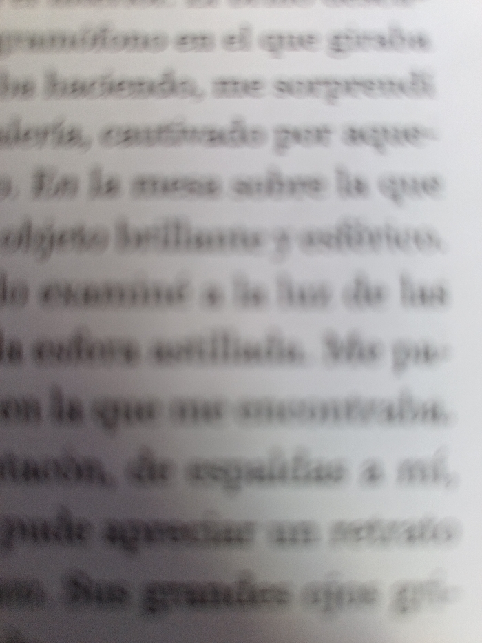 The image displays a blurred, close-up detail of printed text on a light-colored page