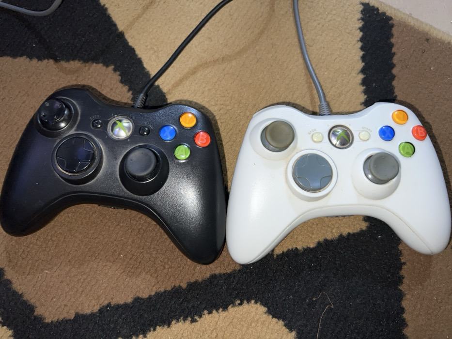 - "Two Xbox 360 controllers rest on a patterned carpet" by FM-OfdG02, licensed under CC BY 4.0