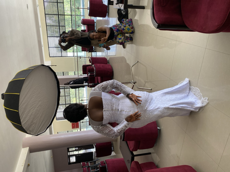 An indoor professional photoshoot is underway in a spacious, well-lit hall in Kuru Karama, Nigeria