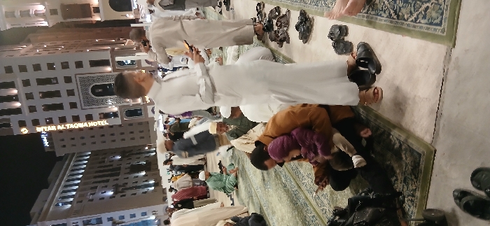 - "The image depicts a crowded outdoor scene at night, located in Medina, Saudi Arabia, adjacent to the Anwar Al Madinah Movenpick Hotel, identifiable by its illuminated sign in the background" by FM-DHzUs1, licensed under CC BY 4.0