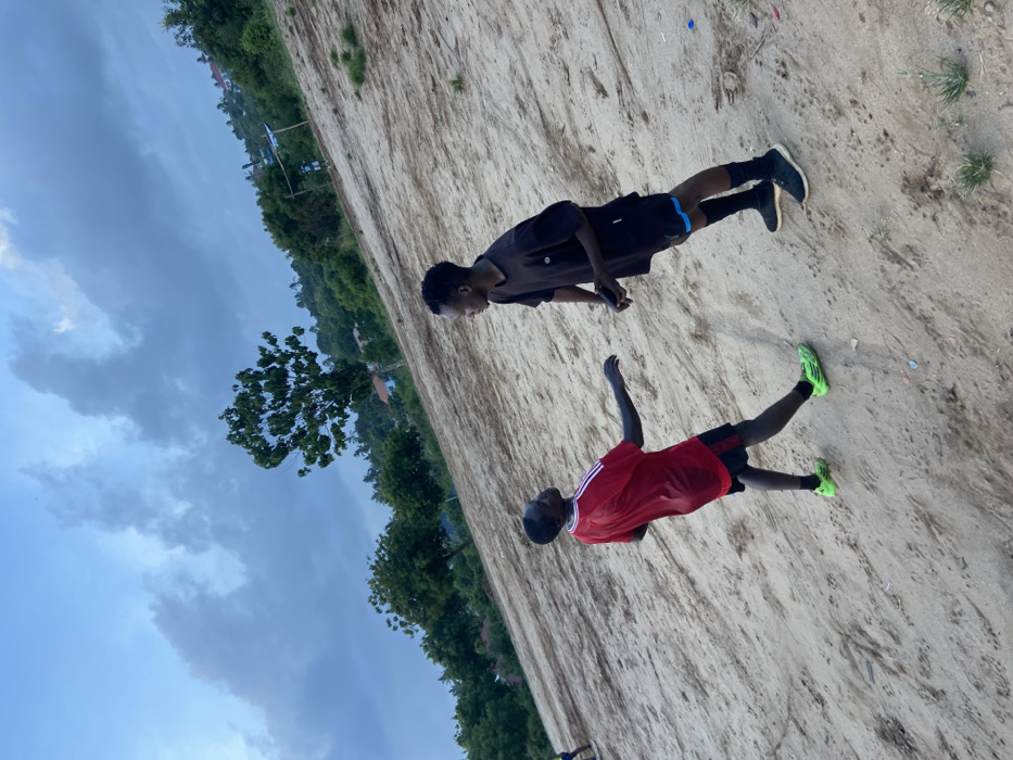 - "The image captures two young males interacting on an expansive, unpaved dirt and sand field in Dar es-Salaam, Tanzania, under a heavily overcast sky" by FM-hlmC83, licensed under CC BY 4.0