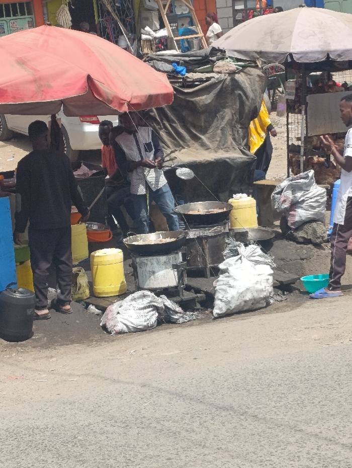 - "The image depicts an outdoor street food vending scene situated on a dirt shoulder adjacent to an asphalt road in Matungulu west ward, Kenya" by FM-R7nA43, licensed under CC BY 4.0