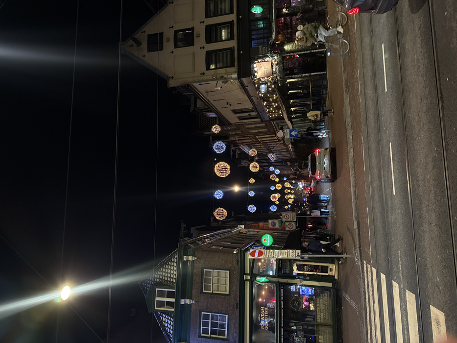 - "A nighttime street scene features buildings adorned with festive lights hanging overhead" by FM-wzXZC3, licensed under CC BY 4.0