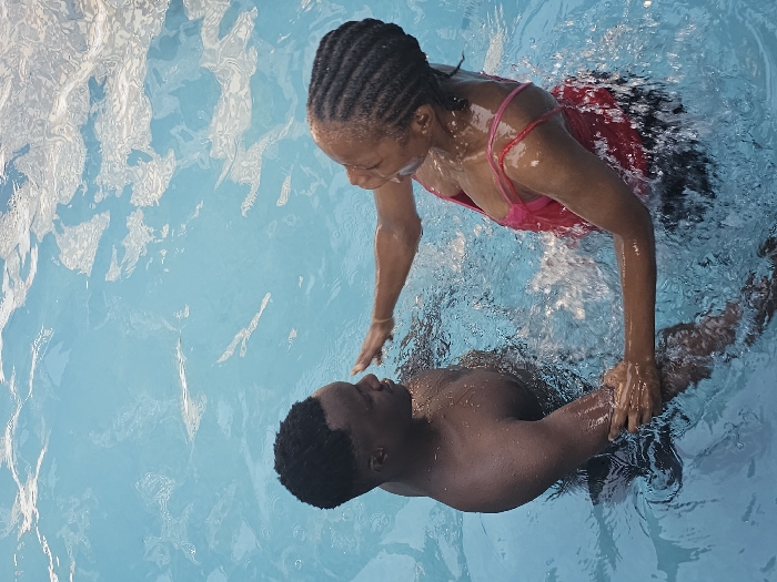 - "A high-angle shot captures two individuals, an adult male and an adult female, of apparent African descent, partially submerged in a light blue body of water, consistent with a swimming pool, located in Asaba, Nigeria" by FM-TqJgz2, licensed under CC BY 4.0