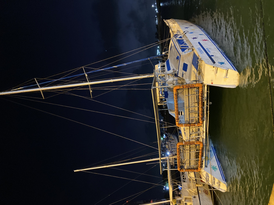- "A white catamaran named "YEMAYA" and branded "INFINITO CATAMARANES" is moored at night in the city of Punta de Piedras, Venezuela" by FM-49R4h1, licensed under CC BY 4.0