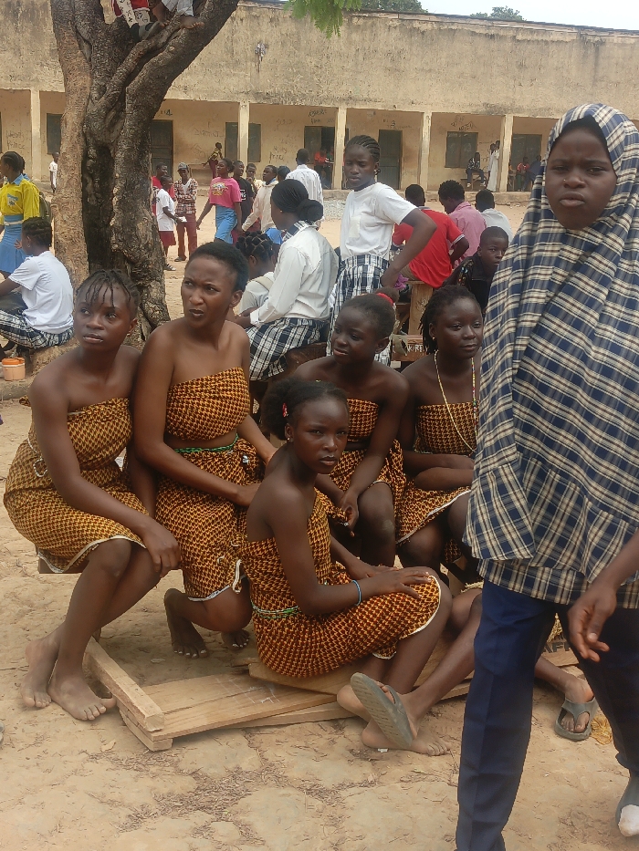 The image displays an outdoor scene in Akwanga, Nigeria, within what appears to be a school or community compound
