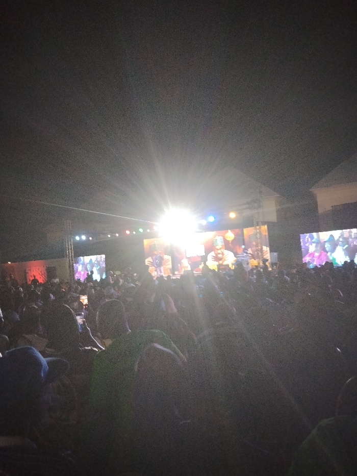 The scene depicts a large outdoor night event taking place in Fagge D2, Nigeria