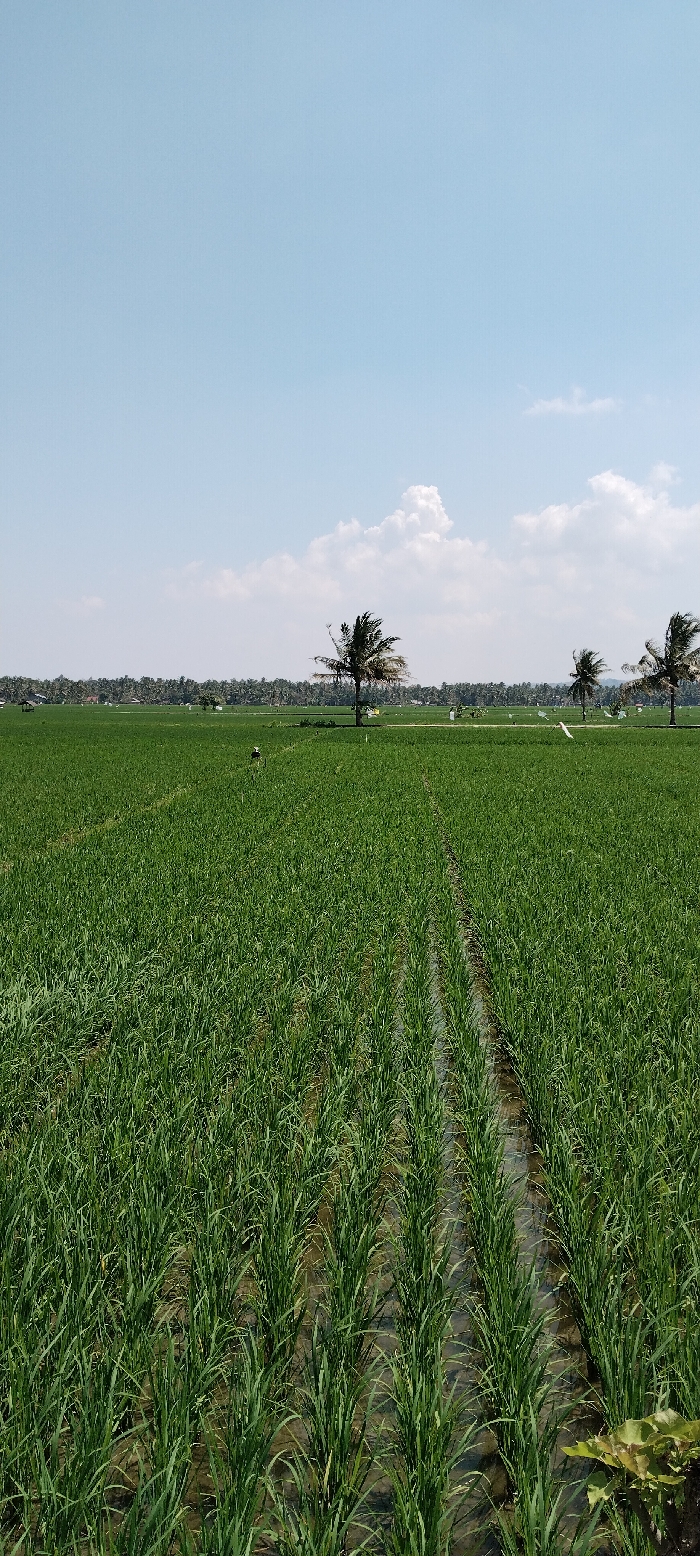 - "A verdant rice paddy stretches across the frame under a clear blue sky dotted with fluffy clouds" by FM-m6rI03, licensed under CC BY 4.0