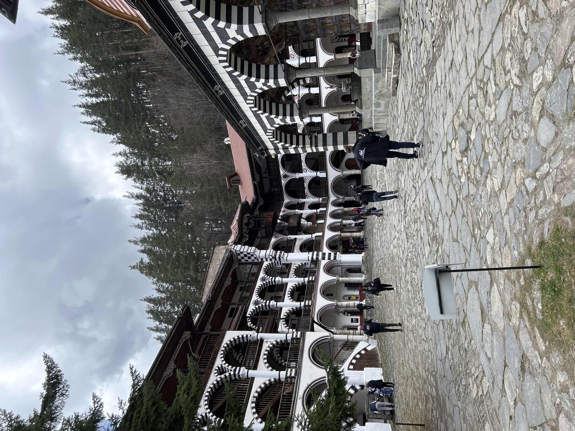 The image captures a scene at Rila Monastery in Rilski manastir, Bulgaria