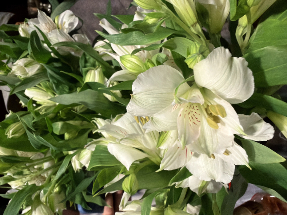 - "The image displays a detailed, close-up view of a dense floral arrangement, predominantly featuring white Alstroemeria (Peruvian Lily) flowers" by FM-okRIy2, licensed under CC BY 4.0