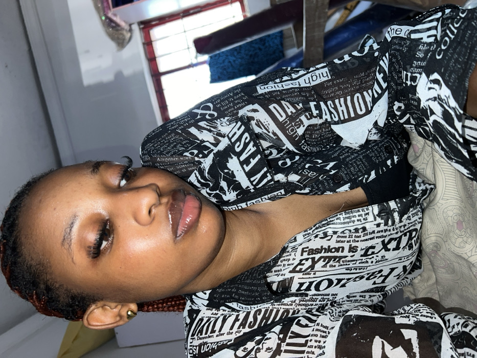 This image depicts a young Black female, likely in her late teens or early twenties, situated indoors in the city of Ado, Nigeria