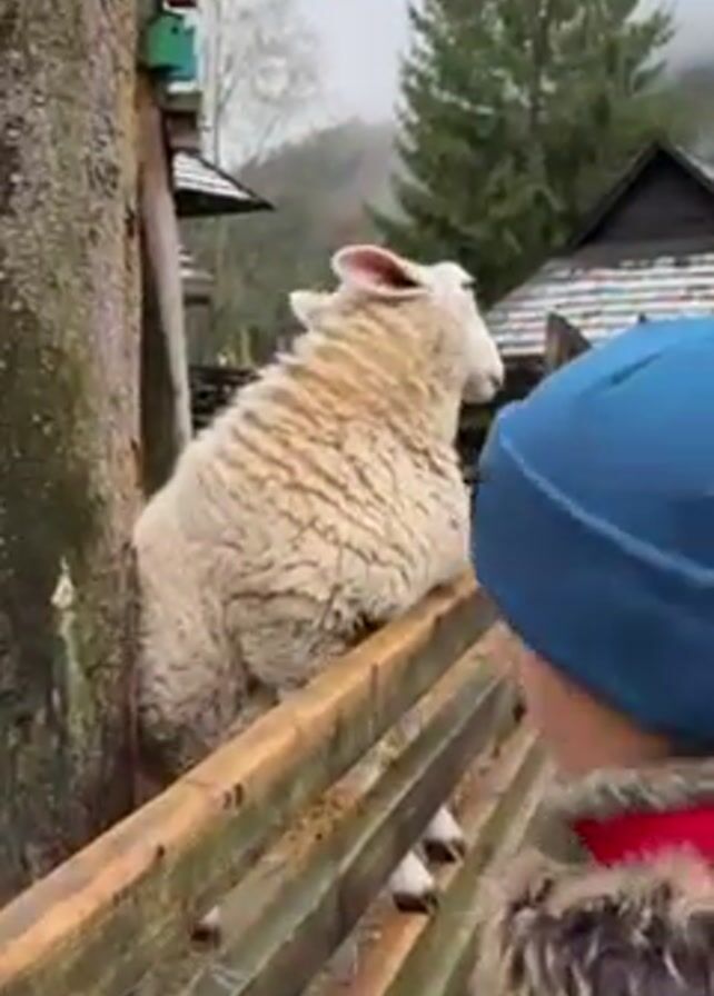- "A young boy in a red jacket and blue beanie stands next to a wooden fence with a sheep leaning over it" by FM-83v1j2, licensed under CC BY 4.0