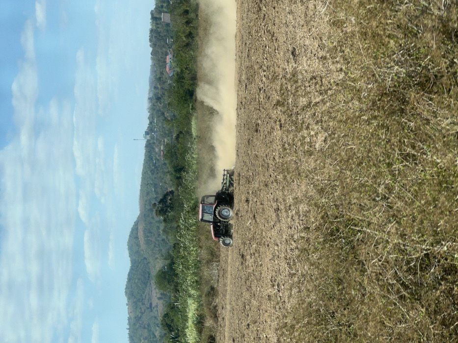 - "A red tractor tills a field, kicking up a cloud of dust" by FM-gZMgt2, licensed under CC BY 4.0