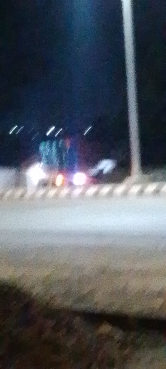 This image depicts a blurry, low-light, nighttime scene on a road in Zango-ndaji, Nigeria