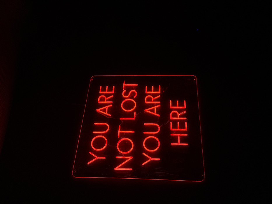 - "A rectangular red neon sign is prominently displayed against a dark, featureless background, likely an interior wall" by FM-6aVsN2, licensed under CC BY 4.0