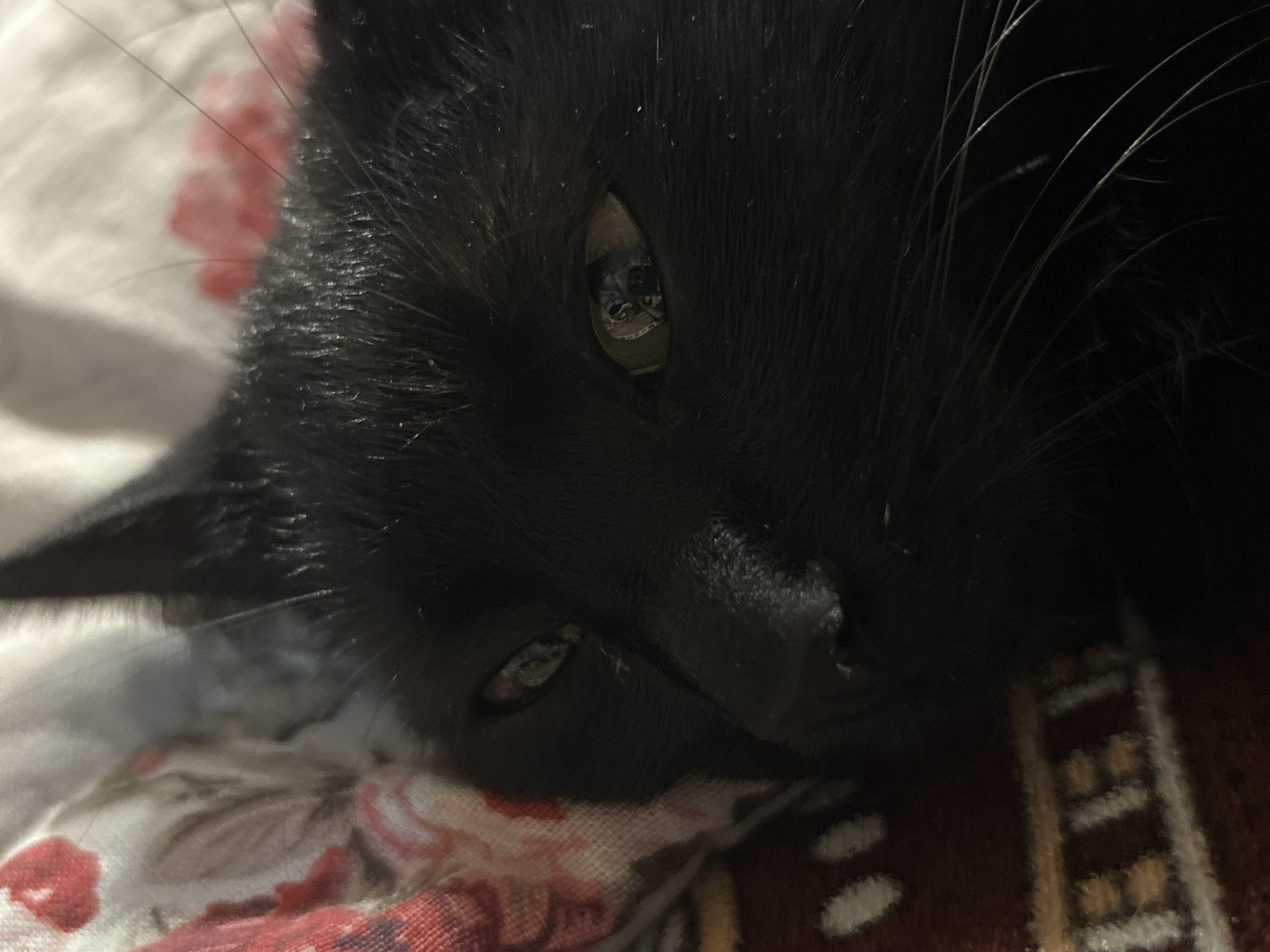 - "A close-up photograph depicts the head of a black domestic cat, positioned indoors within the city of Slavyanovo, Bulgaria" by FM-naVU72, licensed under CC BY 4.0