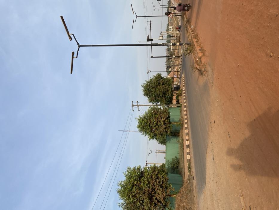 This image depicts an outdoor road scene in the city of Television, Nigeria, under a clear blue sky with minimal cirrus cloud cover