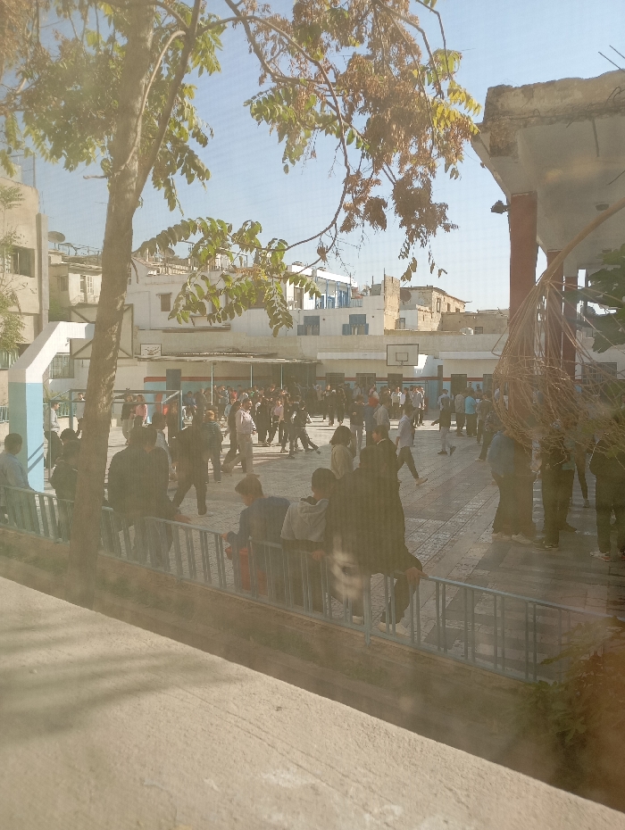 - "The image displays an outdoor scene within what appears to be a schoolyard or institutional courtyard in an urban area of Damascus, Syria" by FM-uNgLB2, licensed under CC BY 4.0
