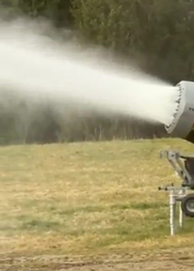 - "A snow cannon sits on a grassy field and shoots a wide stream of mist out into the landscape" by FM-N643B3, licensed under CC BY 4.0