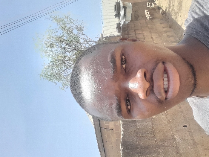 A young Black male, appearing to be in his late teens or early twenties, is centered in a close-up, selfie-style photograph