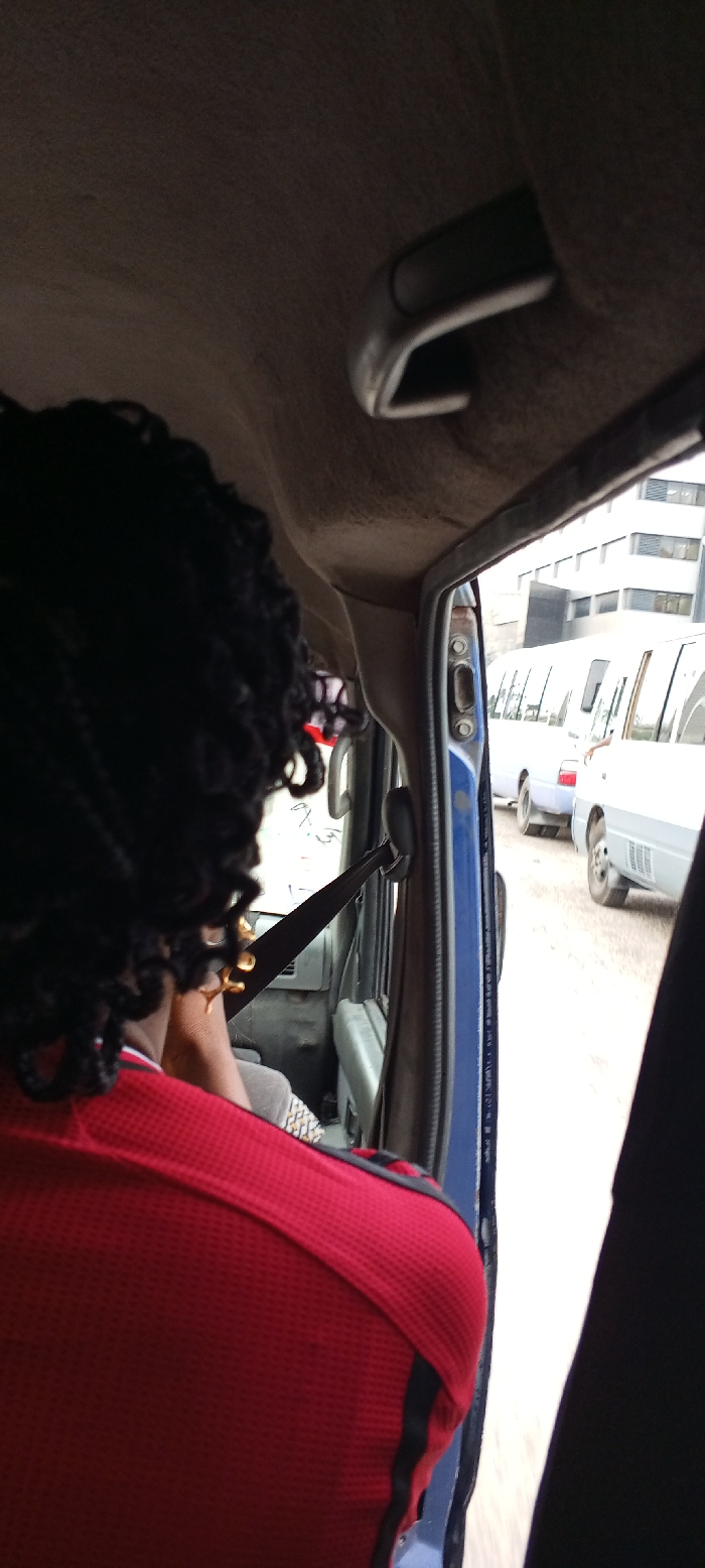 - "Inside a vehicle, a person with dark curly hair wears a red shirt" by FM-yVjH22, licensed under CC BY 4.0