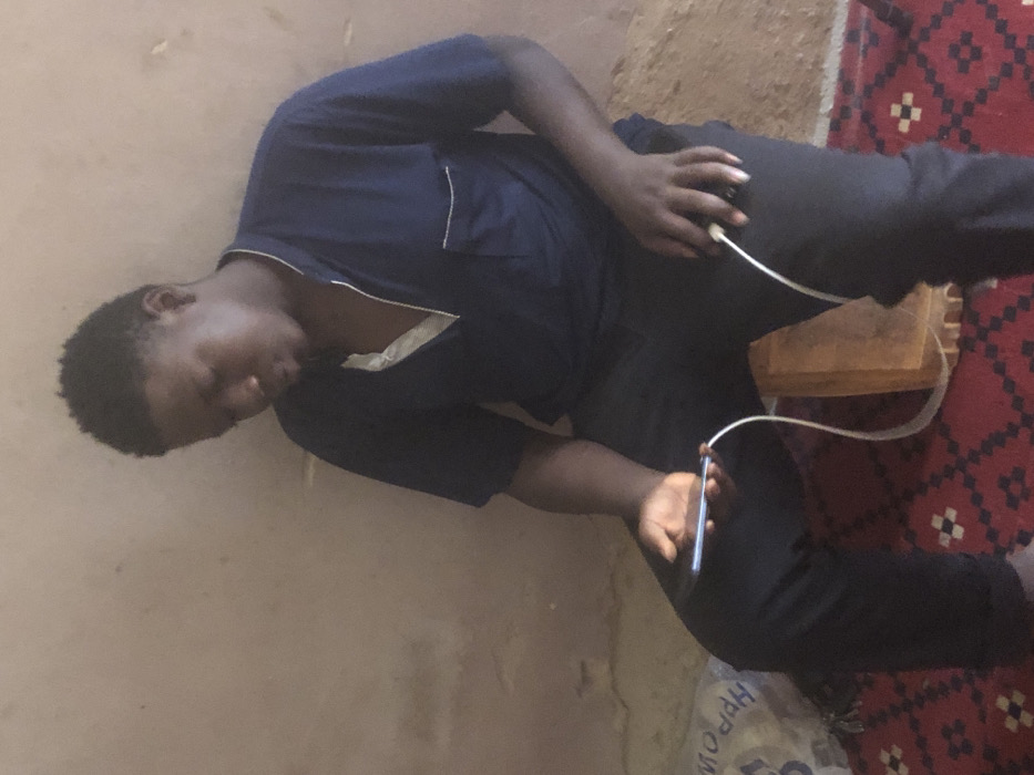 An individual is depicted seated indoors in Dutsinma B, Nigeria