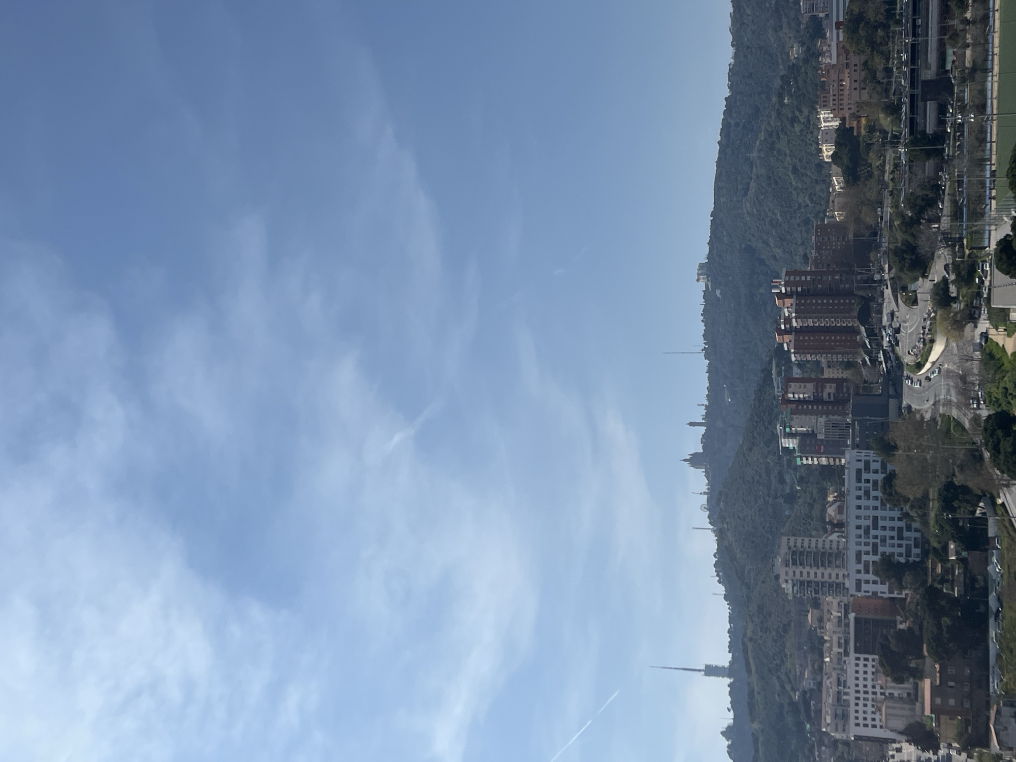 - "The image depicts a panoramic view of Barcelona, Spain, under a clear to partly cloudy blue sky, captured from an elevated position looking towards the Tibidabo mountain range" by FM-6twaq1, licensed under CC BY 4.0