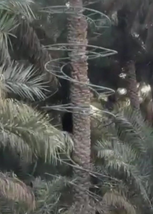 - "date palm tree with a spiral metal structure attached to its trunk" by FM-PtO4g1, licensed under CC BY 4.0