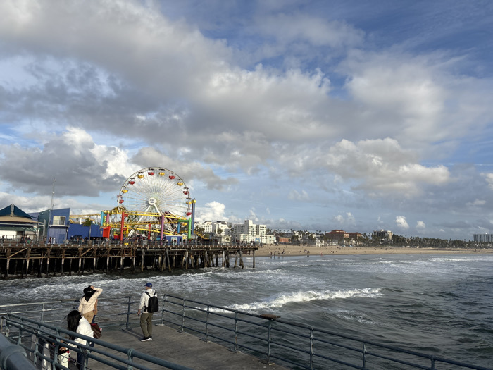 - "Santa Monica Pier is captured on a partly cloudy day, with the Ferris wheel prominently displayed amidst colorful structures" by FM-97btd2, licensed under CC BY 4.0