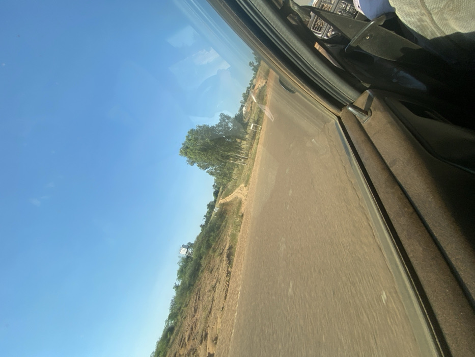 - "The image captures a view from the interior of a vehicle, looking out through a dusty passenger side window towards a rural landscape in Wang, Nigeria, under a clear, bright blue sky" by FM-v68Gl1, licensed under CC BY 4.0