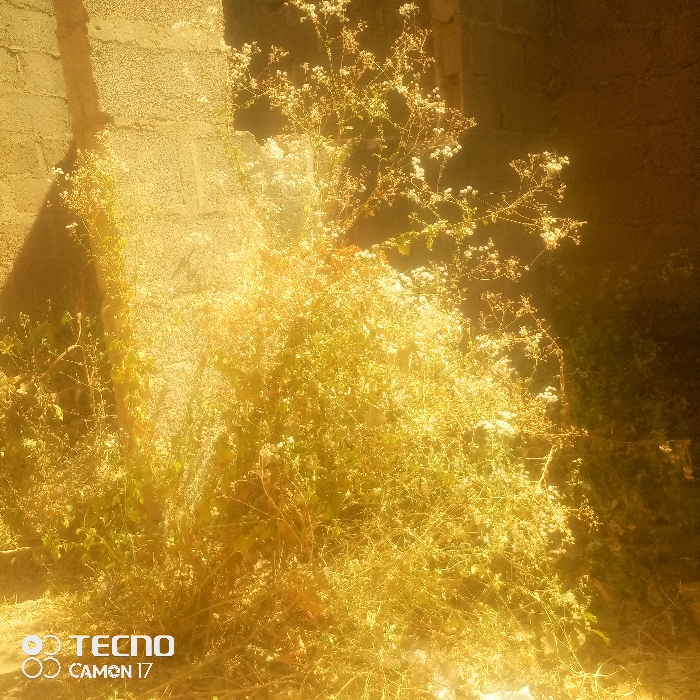 The image portrays an outdoor scene at Unknown, Unknown, characterized by a dense growth of herbaceous vegetation with thin branches and numerous small pale flowers