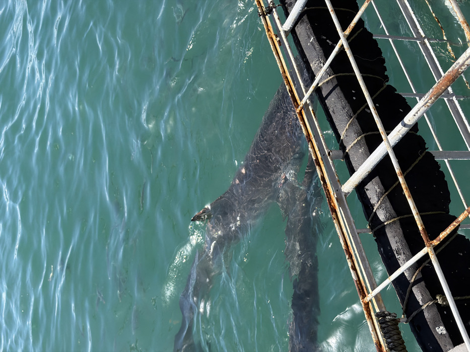- "A large shark, identified as a Great White, is observed swimming in clear, turquoise-green ocean waters within the Overstrand Local Municipality, South Africa" by FM-tYDL83, licensed under CC BY 4.0
