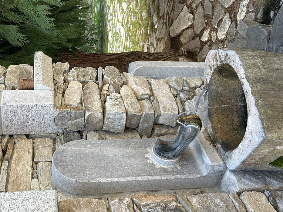 - "An outdoor scene in Bachkovo, Bulgaria, depicts a functioning stone water fountain integrated into a dry-stacked stone wall" by FM-o3SHn1, licensed under CC BY 4.0