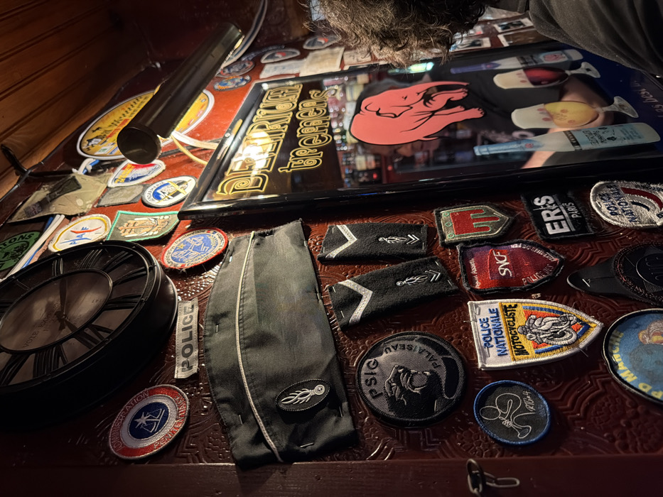 - "A collection of patches, insignia, and objects related to French police and emergency services are arranged on a textured surface" by FM-qk6fj2, licensed under CC BY 4.0