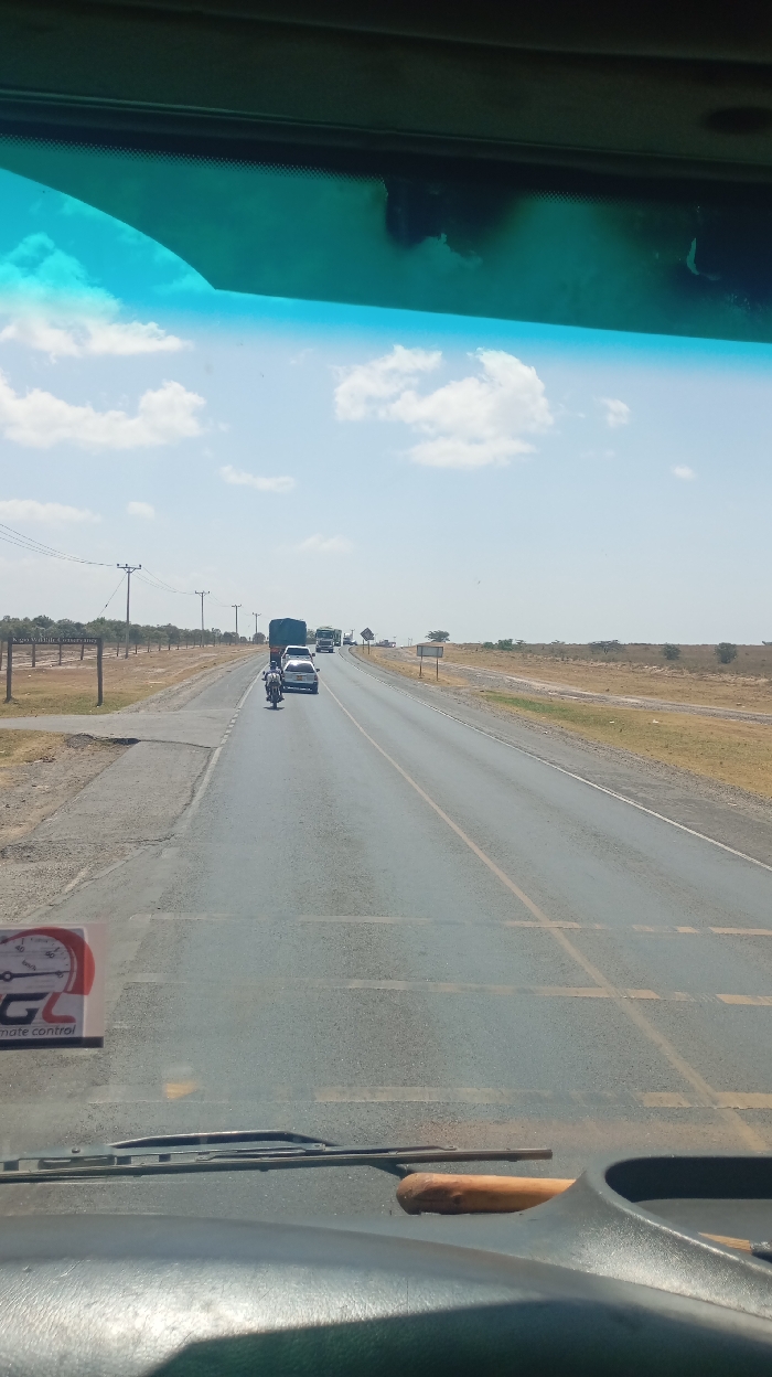 - "The image depicts a daytime scene from the interior of a vehicle, looking forward through a windshield with a blue-green tint along the top edge, in Malewa West ward, Nakuru County, Kenya, specifically near the Kigio Wildlife Conservancy" by FM-xF9yJ2, licensed under CC BY 4.0