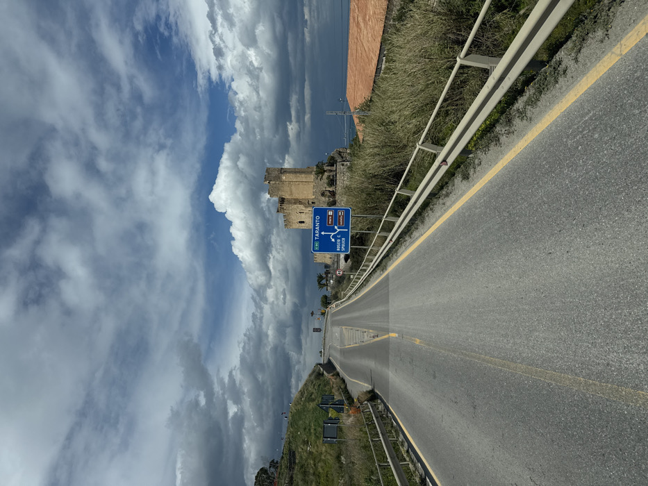 - "The image depicts a two-lane asphalt road in Marina di Roseto Capo Spulico, Italy, under a dramatic, partly cloudy sky" by FM-vI9HN2, licensed under CC BY 4.0