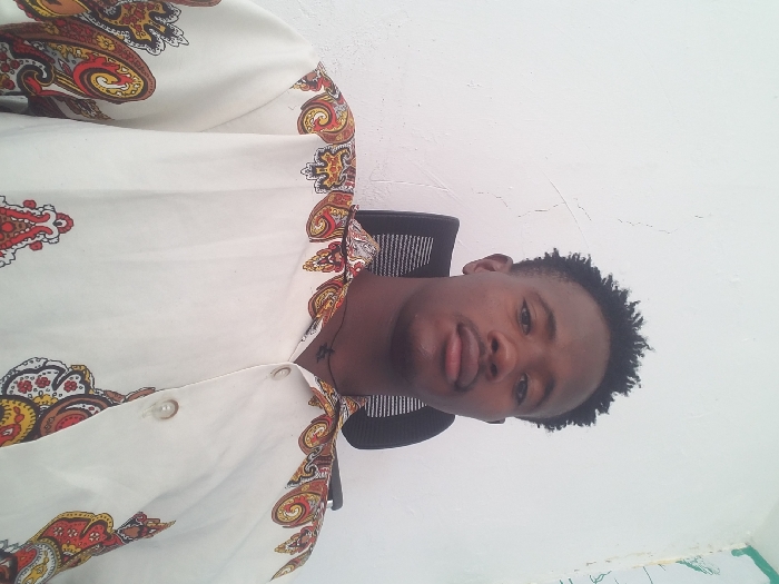 A young adult male is depicted seated, looking directly forward, in the city of Agingi Zion, Nigeria
