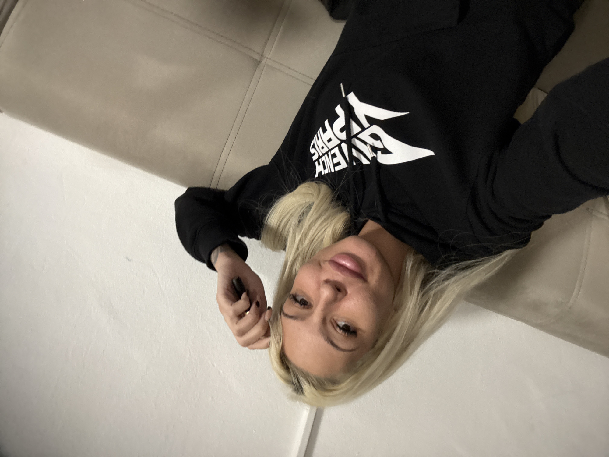 - "A woman with blonde hair is lying on a light-colored couch, wearing a black hoodie with white graphics that say "GIVENCHY PARIS"" by FM-B5w1D2, licensed under CC BY 4.0