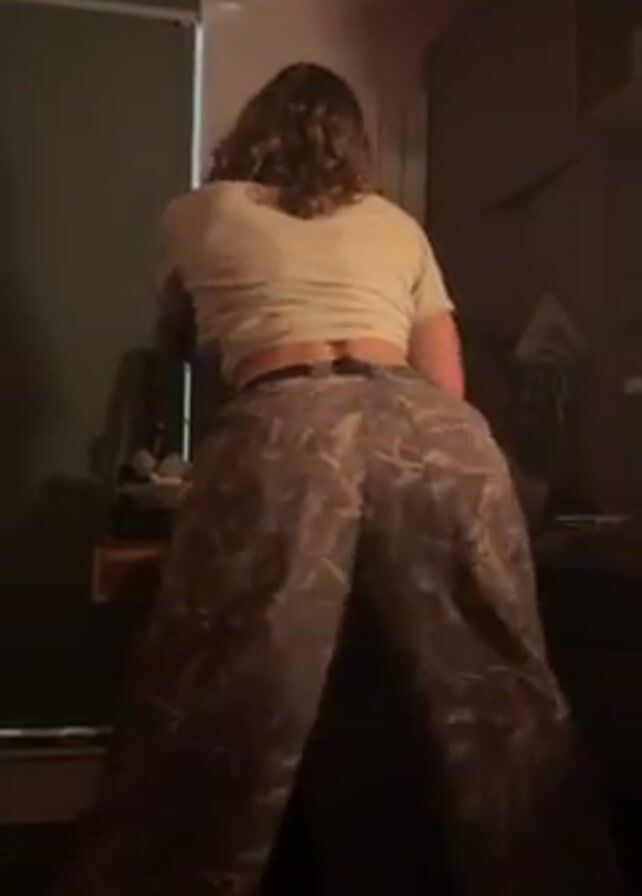 - "A person stands in a dimly lit room with a window behind them, wearing a cropped off-white t-shirt and loose-fitting camouflage pants" by FM-jCIl63, licensed under CC BY 4.0