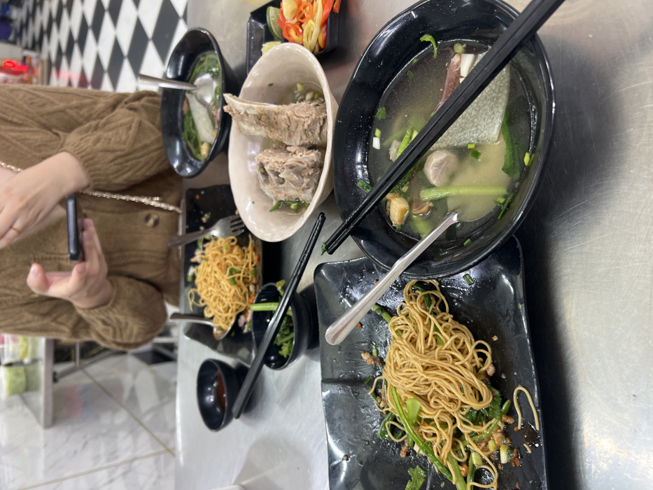 The image captures an indoor dining scene at a casual eatery in Ho Chi Minh City, Vietnam