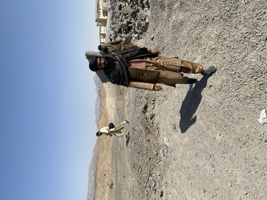 The image captures an outdoor scene in Bar Mel, Afghanistan, under a clear, cloudless blue sky