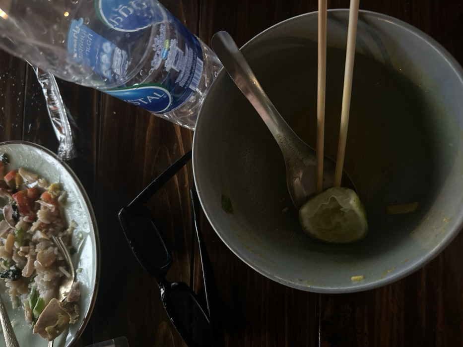 - "The scene, located in Ban Paem Bok, Thailand, displays the aftermath of a meal on a dark brown wooden table" by FM-S4vcm1, licensed under CC BY 4.0