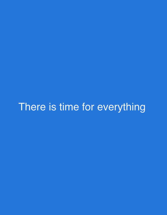 This image, presented in the city of Nyanya, Nigeria, displays a solid blue background. Centered horizontally and vertically on this field is white sans-serif text that reads: "There is time for everything." No additional subjects, objects, people, actions, interactions, or specific environmental details are depicted within the image content beyond the colored background and text.