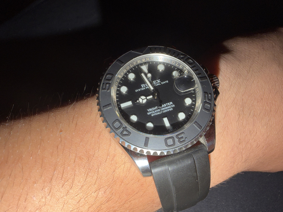 - "The scene, located in Blagoevgrad, Bulgaria, features a close-up view of a person's left wrist adorned with a Rolex Yacht-Master wristwatch" by FM-MT9X83, licensed under CC BY 4.0